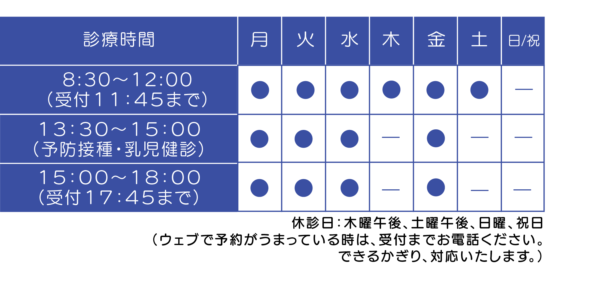 ・初診の方は受付までお電話ください。